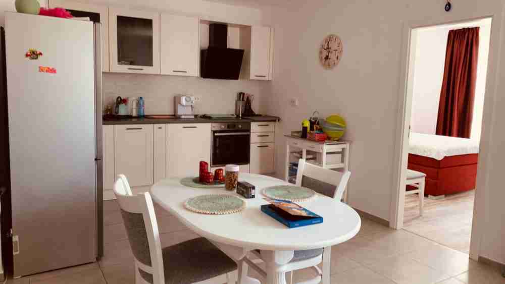 Жилището се състои от: всекидневна с кухненски бокс, две спални, баня с WC, и две тераси. Продава се напълно обзаведено с мебели и техника.